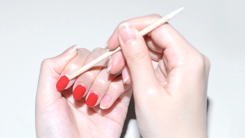 2.オフする時は、ウッドスティックの先端をジェルと爪のあいだに差し込んで隙間を作り、外側からぐるっと一周するように少しずつジェルをはずしていきます。