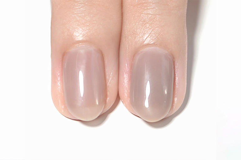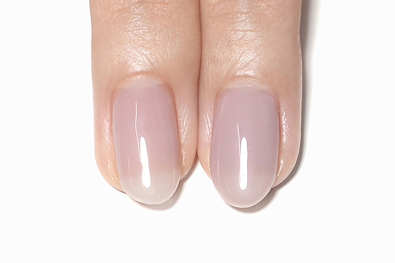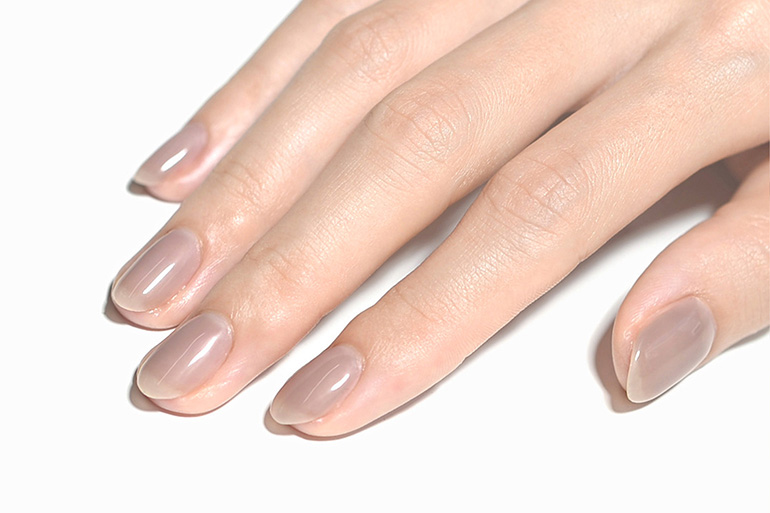 肌なじみ良く透明感ある色味は、色ムラになりにくく、爪の生えぎわやサイドのきわまでうまく塗れなくても、爪が伸びて根本に自爪が現れても、全く目立ちません。