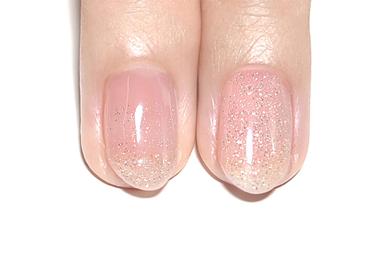 シンプルなワンカラー1度塗りでフリーエッジ(爪先端の白い部分)が透けて見える程度。2度塗りで隠れる程度の発色。仕事でもプライベートでも、日常のほぼすべての場面でお使いいただけます(ラメはアクセントとしてポイント使いしてください)。肌色の血色良く見えて、手先から好印象に。